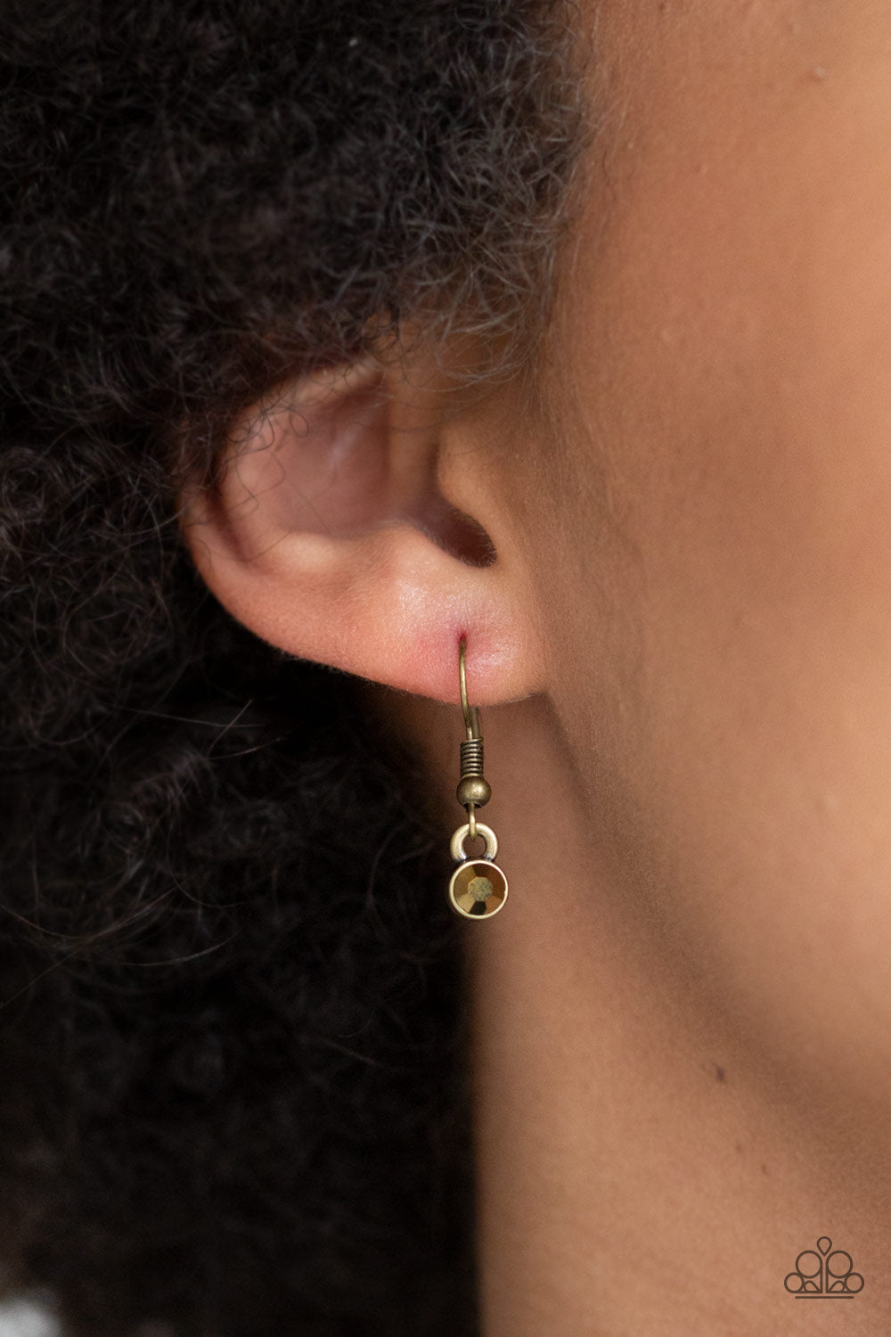 An aurum rhinestone encrusted brass feather joins a lifelike brass feather at the bottom of a lengthened brass chain, creating a whimsical pendant. Features an adjustable clasp closure. Sold as one individual necklace. Includes one pair of matching earrings.