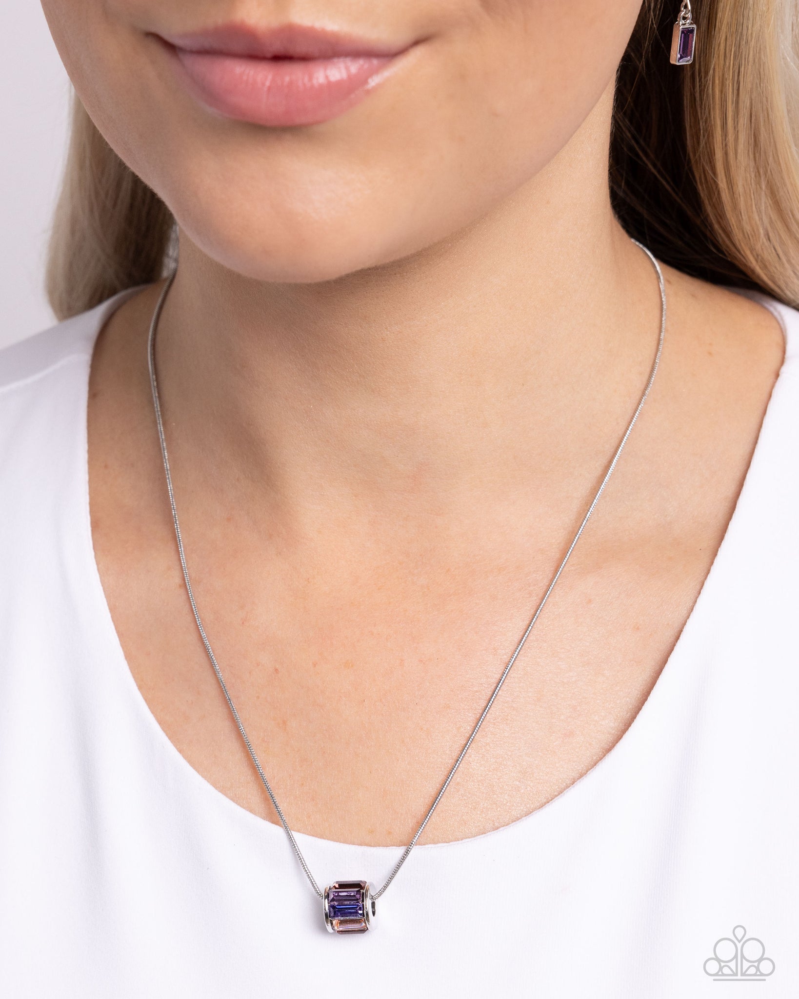 Gliding along a silver snake chain, a silver wheel pendant is embellished with emerald-cut purple multicolored gems for a touch of eye-catching color and detail. Features an adjustable clasp closure.